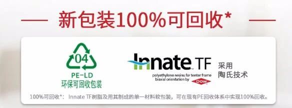 2020年10月16日,陶氏公司宣布,中国洗涤用品领域的领导品牌“立白”选用INNATE™TF双向拉伸聚乙烯树脂(TF-BOPE),以助实现其洗衣凝珠包装的完全回收。首批采用该材料的立白洗衣凝珠已在立白天猫旗舰店和天猫超市上发售。本次合作进一步推进了陶氏公司最新可持续发展指标:到2035年,公司用于包装领域的产品将实现100%可重复使用或再生利用。